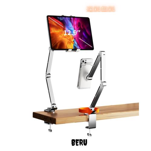 【便利】挟める機器のサイズの範囲は4−12.9インチです。タブレット、スマートフォンなどサイズに対応しているものを手軽にはさめます。アームは長い、使用が便利です。
