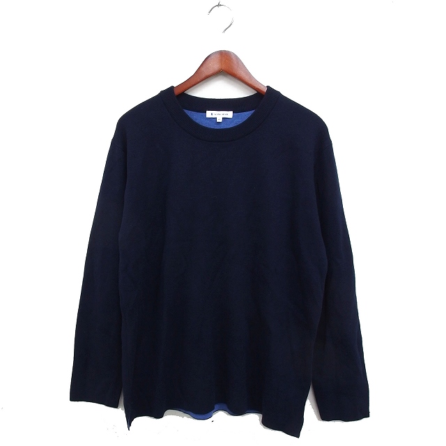 【中古】グローバルワーク GLOBAL WORK ダブルフェイス クルーネック ニット セーター 長袖 無地 XL ネイビー 紺 /FT11