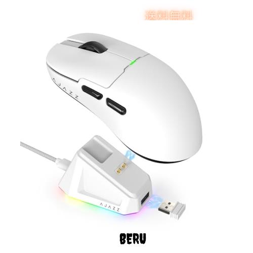 ◆商品名:ATTACK SHARK×AJAZZ AJ159P ゲーミングマウス 2.4GHz無線接続 USBケーブル接続 マグネット充電スタンド PAW3395センサー RGBライト 56g