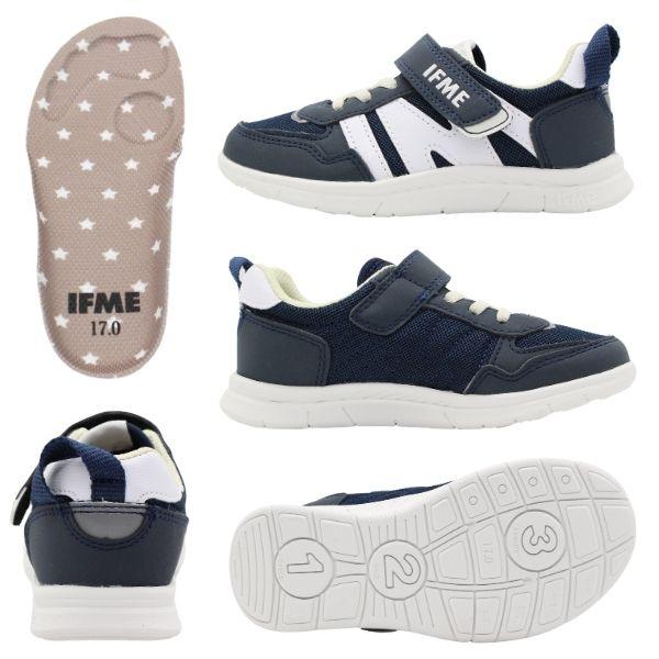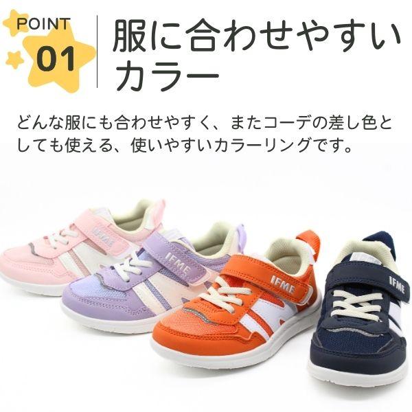 イフミー スニーカー キッズ 子供 ジュニア 靴 紺 ネイビー オレンジ ピンク 紫 パープル 男の子 女の子 シンプル ベルト マジックテープ 面ファスナー 幼稚園 保育園 通園 通学 小学生 幅広 3E 甲高 反射材 屈曲性 履きやすい 歩きやすい IFME 20-5309