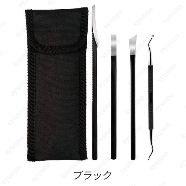 br173# ペディキュアナイフ 当日発送 2color 4本セット 甘皮カッター 爪垢取り ゾンデ ステンレス 角質取り フットケア 巻き爪 甘皮処理 厚い爪 足