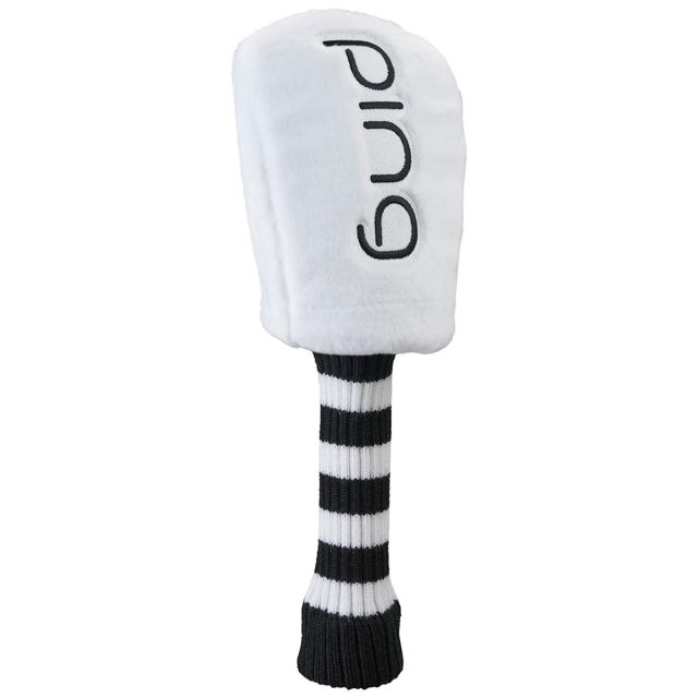 ●モノクロのシンプルなデザイン●大きなpingロゴが目を引くボア素材のドライバー用ヘッドカバー●シャフトを保護できるニット付き