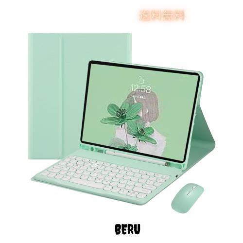 iPad キーボードケース マウス付き 可愛い アイパッド Bluetooth キーボード 丸型キー 2色配色 カラーキーボード ケース カバー マウス レディース 分離式 ペンシル収納 女性向け