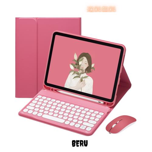 iPad キーボードケース マウス付き 可愛い アイパッド Bluetooth キーボード 丸型キー 2色配色 カラーキーボード ケース カバー マウス レディース 分離式 ペンシル収納 女性向け