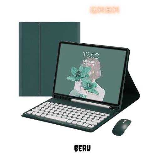 iPad キーボードケース マウス付き 可愛い アイパッド Bluetooth キーボード 丸型キー 2色配色 カラーキーボード ケース カバー マウス レディース 分離式 ペンシル収納 女性向け