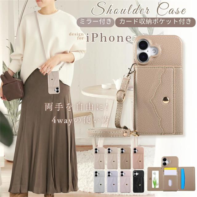 ミラー付き 鏡面 化粧鏡面 カメラ保護 iPhone 16e iPhone 16 レンズ保護 アイフォン16 ケース アイフォン16 プロ マックス ケース カード収納 肩掛け 斜めかけ おしゃれ ショルダーストラップ付き スマホケース iPhone 16Pro ケース リング付き iPhone 16ProMax ケース