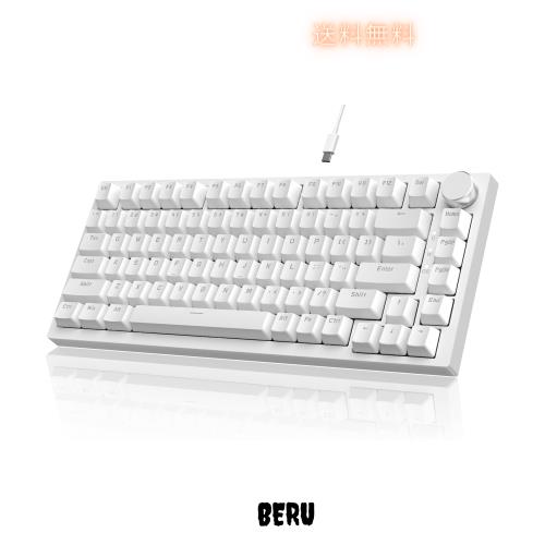 【75% ANSI レイアウトとノブデザイン】最も人気のある 75% AINSI レイアウト、82キーを採用し、仕事/ゲームに実用的な選択肢になります。 デスクスペースを解放しながら、重要な矢印キーとファンクションキーを保持します。高級CNCアルミニウム製の内蔵ボリュームノブで簡単に制御できます。左/右に回すと音量が変更され、ノブを押すとライトがオン/オフになります。 ノブの機能もカスタマイズできます。