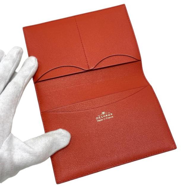 【Sランク】 デルヴォー DELVAUX カードケース パスポートケース レザー 二つ折り パスケース レディース 朱色 レッド オレンジ 新品同様 中古 maj27010