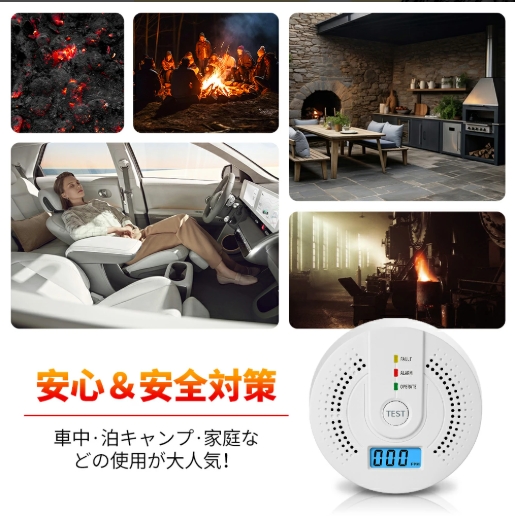 - キャンプと土間での火鉢使用時の検知器として購入です。元々別の機種を持っているので、今回はソロキャンプ時の安全性向上の為2台体制としました。 試しに土間で火鉢を焚いて一酸化炭素濃度を上げて別機種と今回購入機種の反応状況を確認し、結果として個人的には充分使えると思います。