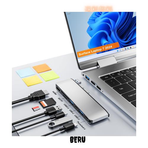 Microsoft Surface Laptop 7 USB ハブ 4K HDMI(第 7 世代)、マイクロソフト Surface Laptop 7 2024 ハブ変換 ドック、USB-C Thunerbolt