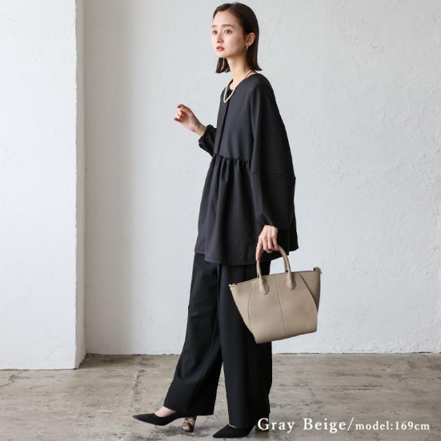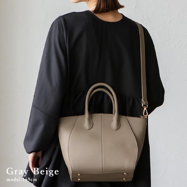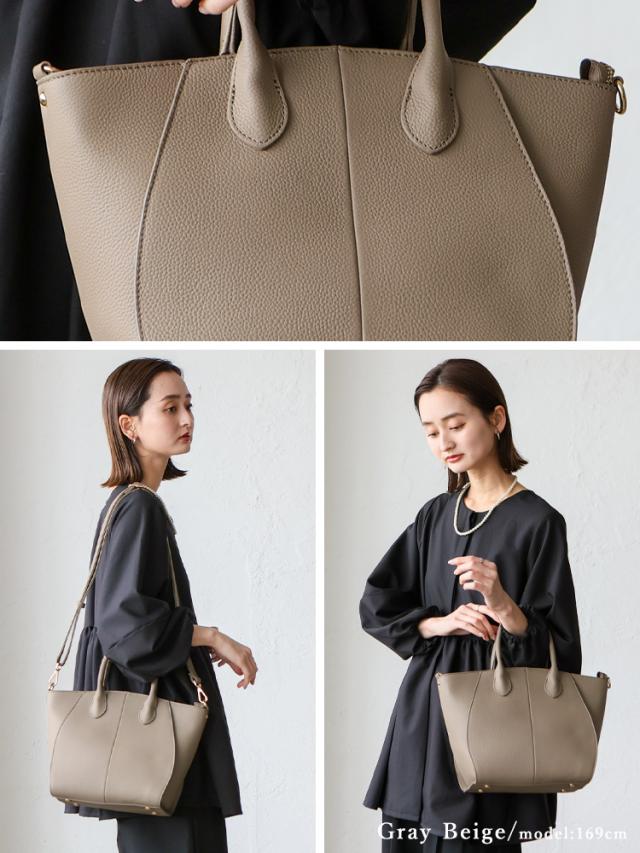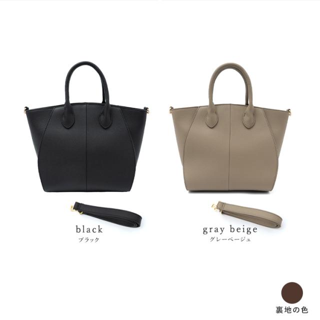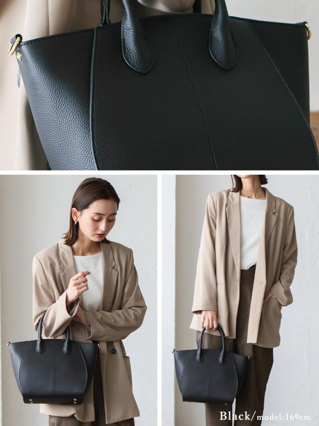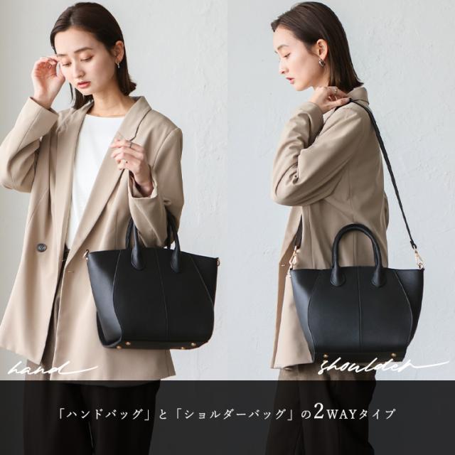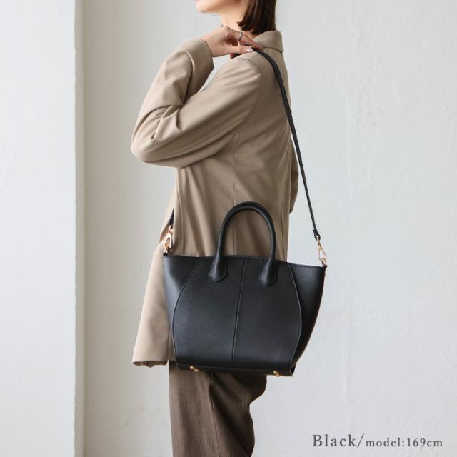 丸い切替が印象的な本革2wayトートバッグ。