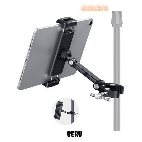 取り付けやすい:クリップを開けて、iPadホルダーをロッドに簡単に接続します。この金属製ブラケットには、直径0.63インチから1.77インチ(16 mm〜45 mm)の異なる柱サイズを取り付けることができます。