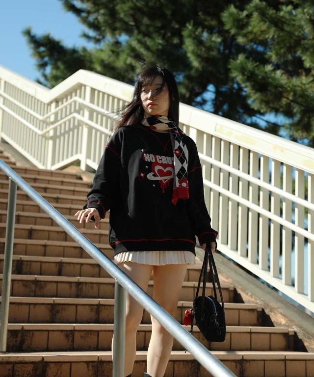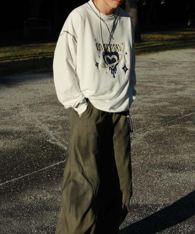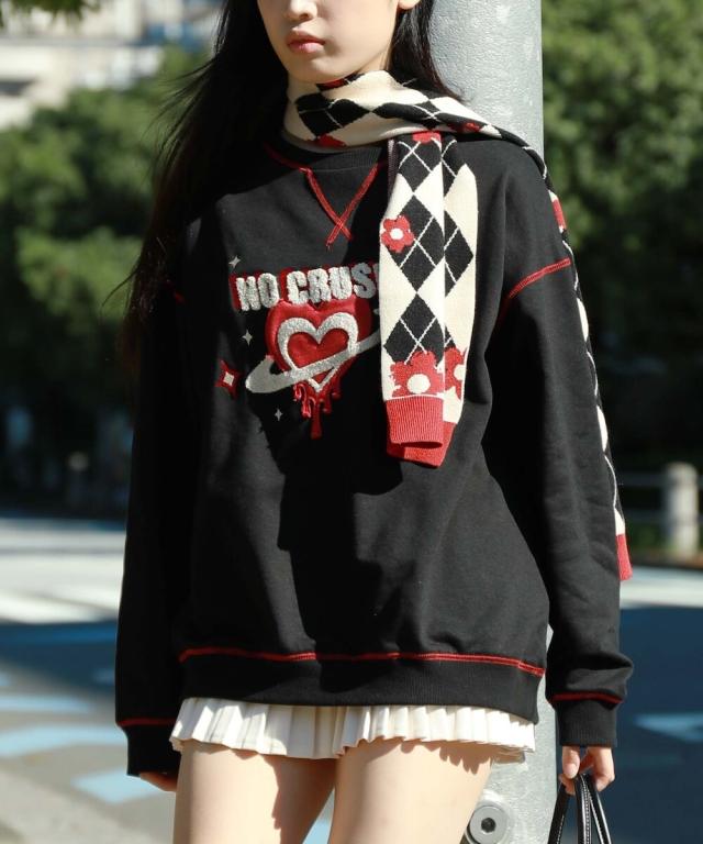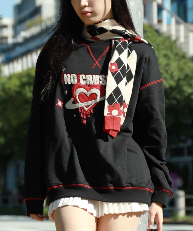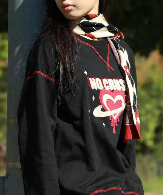 HOOK −original− レトロ調溶けるハートパッチワークスウェット