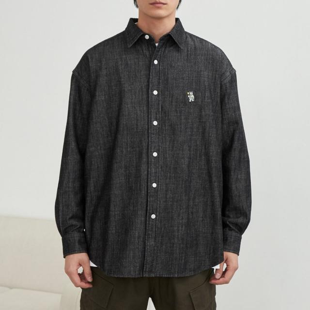 ワンポイントベア刺繍デニムシャツ