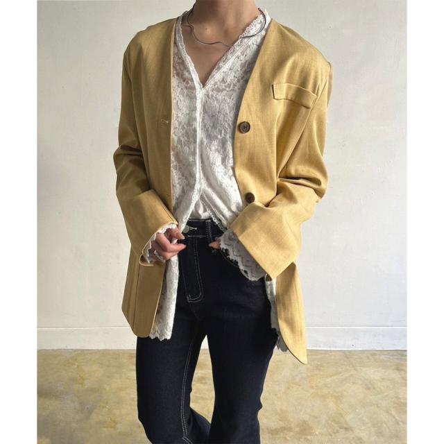 タックポケットノーカラージャケット