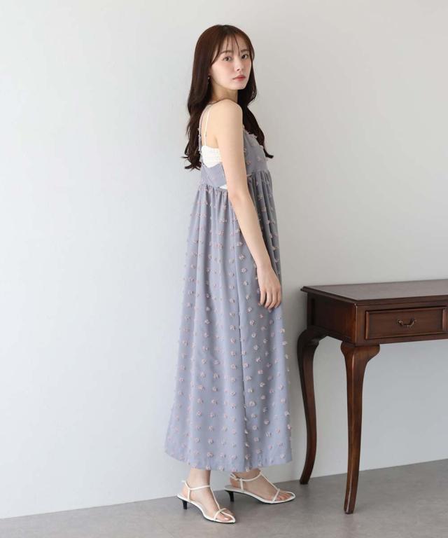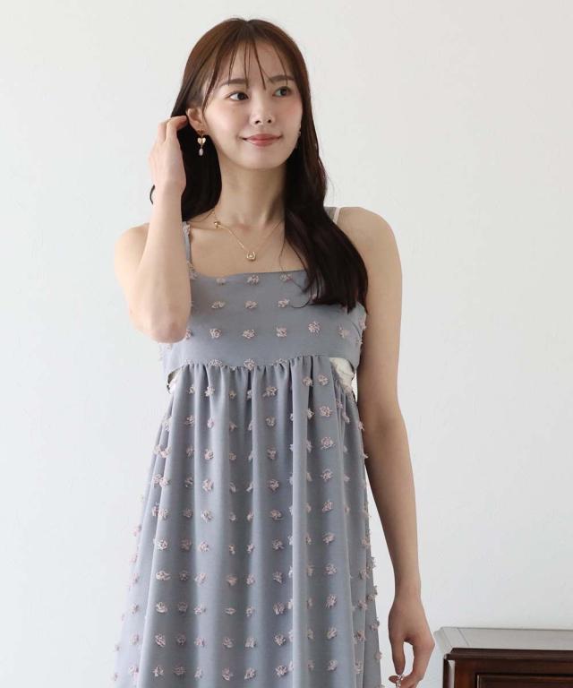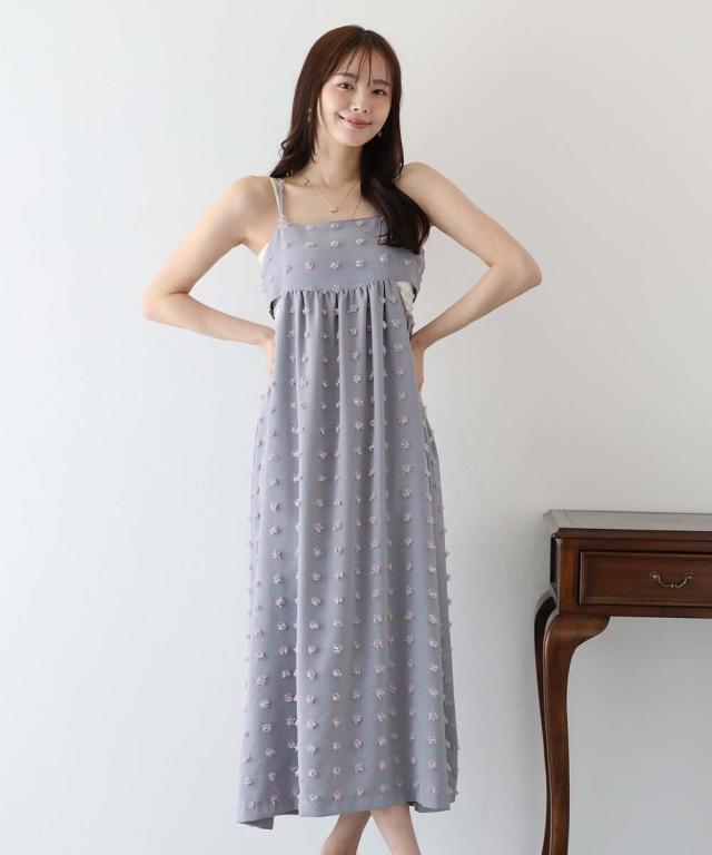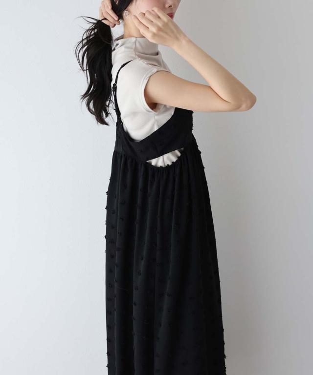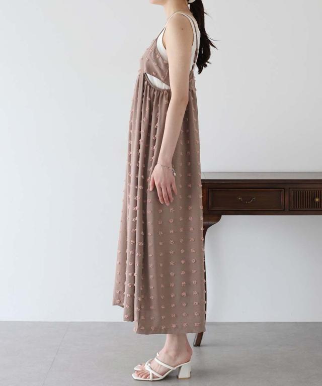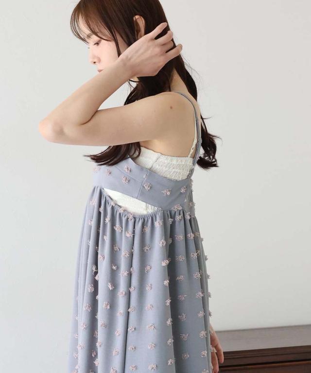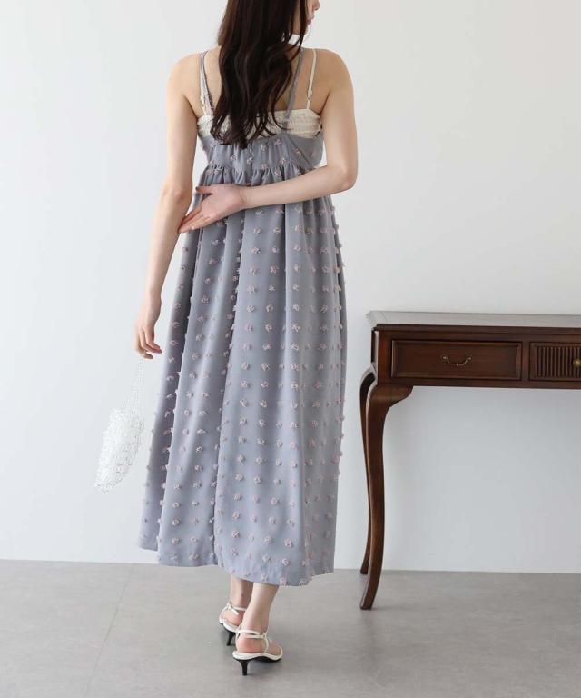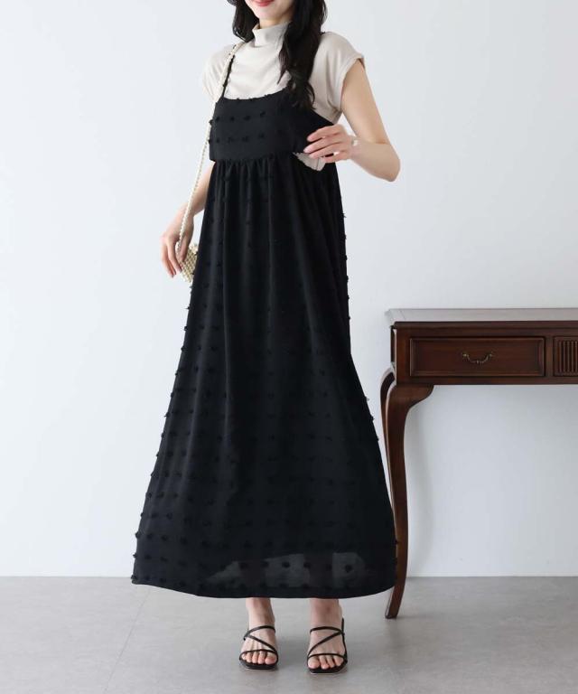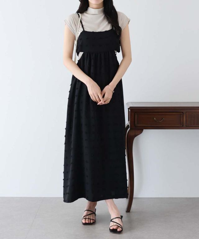 カジュアル×立体的なドット柄のキャミワンピ