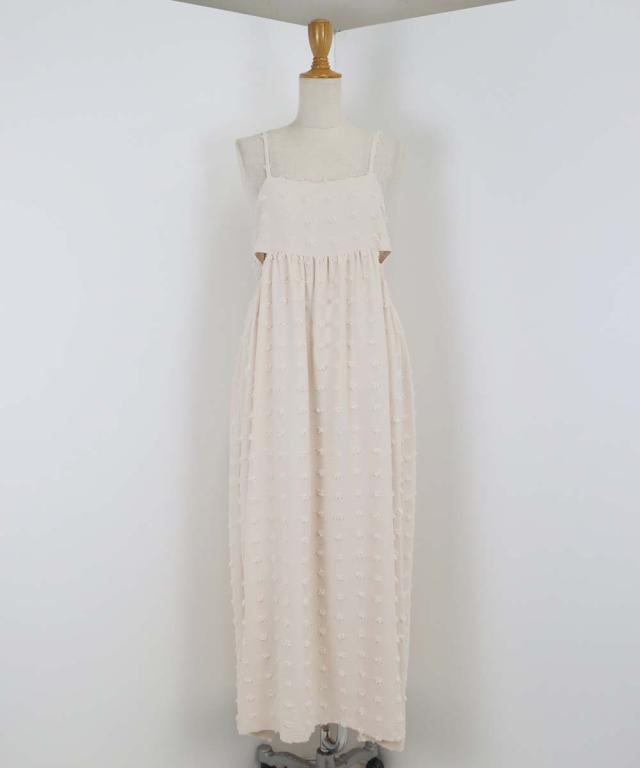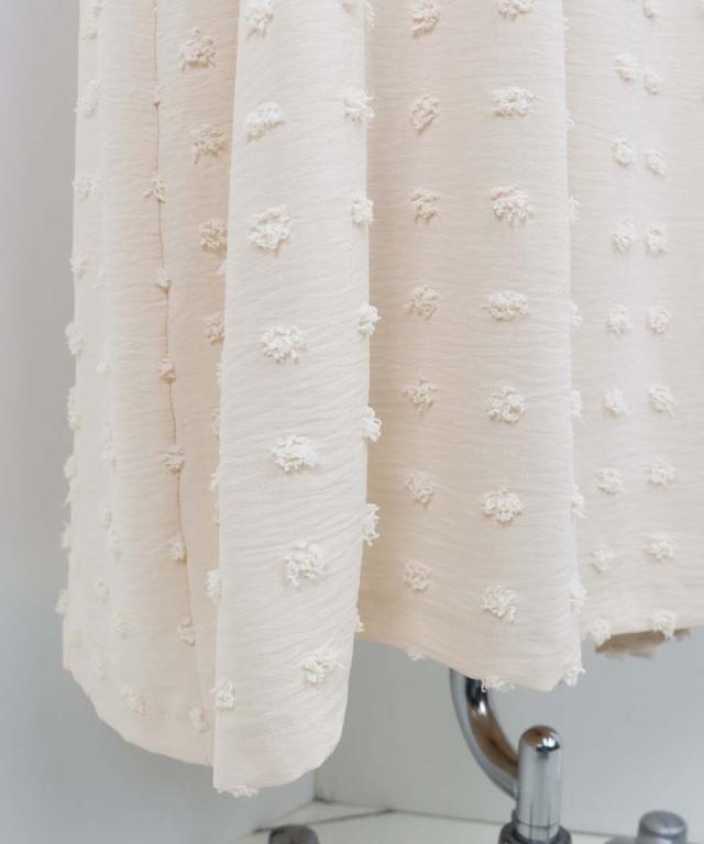 ドット柄のジャガード生地でラブリーに仕上げつつもウエストのスリットでセクシーさをプラス◎