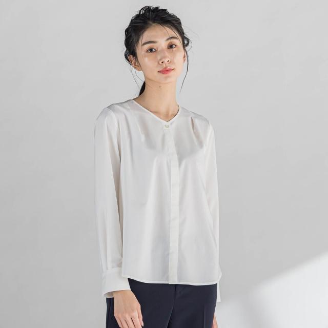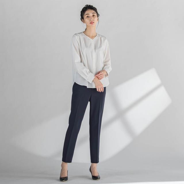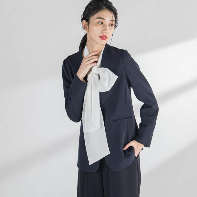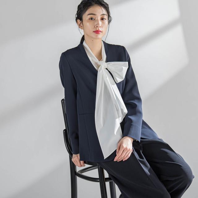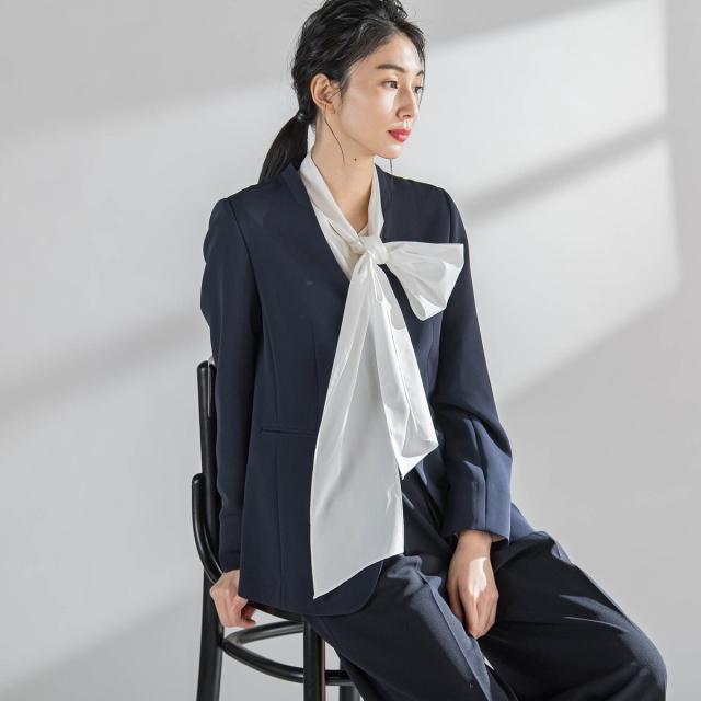 ボウタイは取り外すことができるので、Vネックのブラウスとして2wayでお楽しみいただけます。