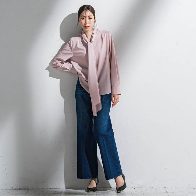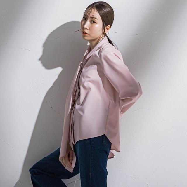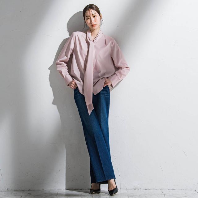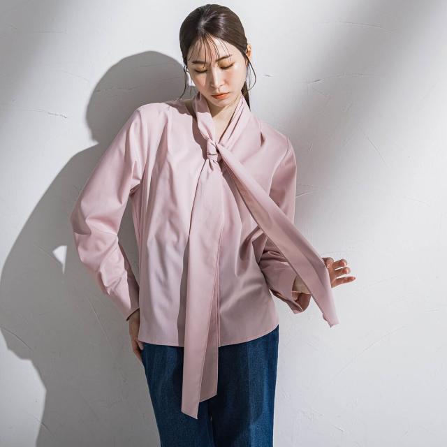 関連ワード:la.f… ラ エフ 2025春夏 2025SS 春 春服 ブラウス ポリエステル レーヨン 無地 長袖 Vネック ボウタイ シンプル フォーマル モード マニッシュ
