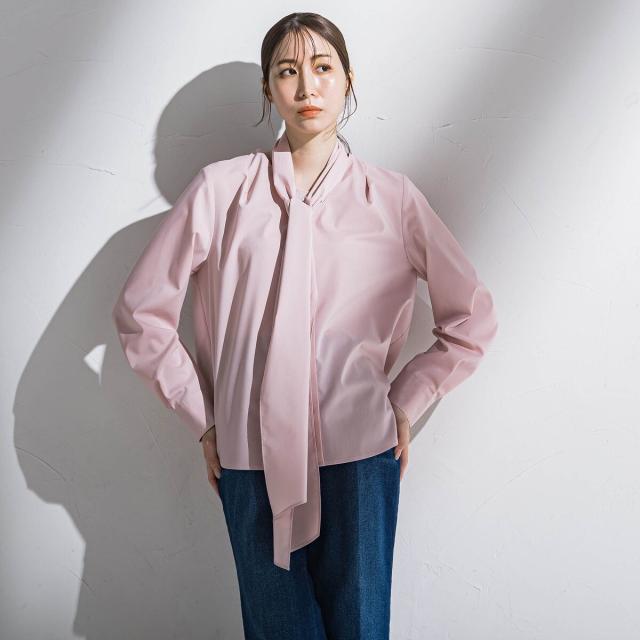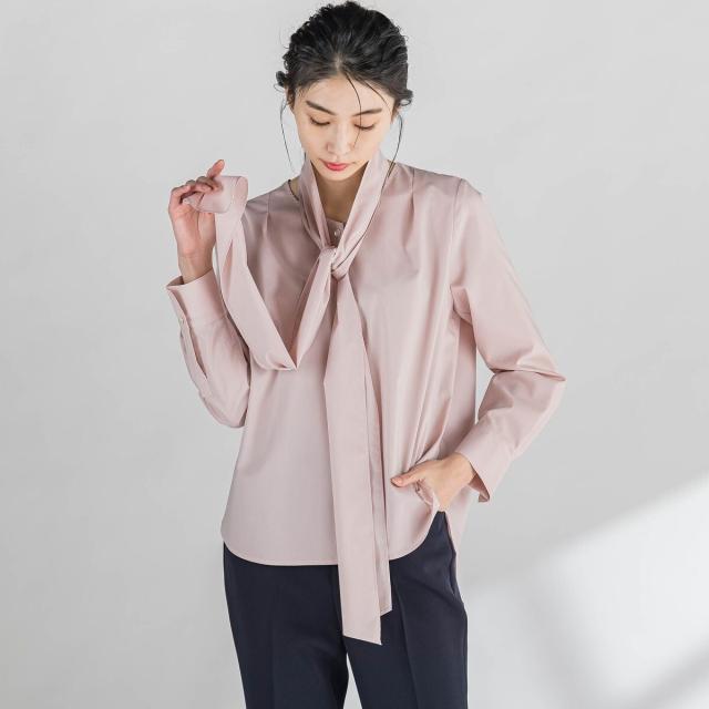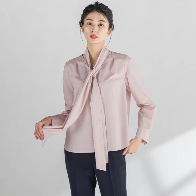 ボウタイをアクセントにした女性らしく華やかなブラウス。