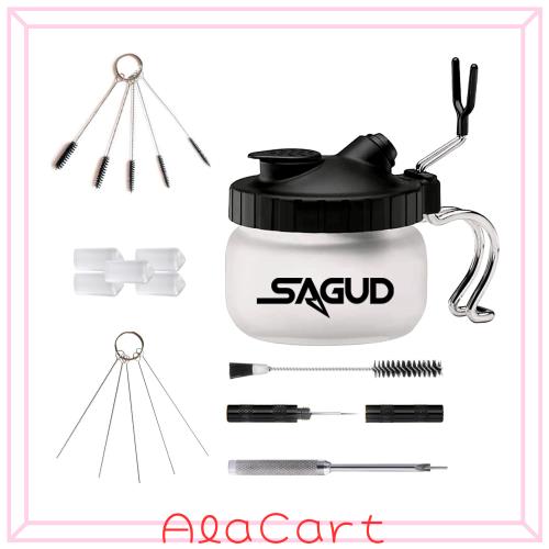 SAGUDエアブラシクリーンキット、エアブラシクリーニングポット、ガラスクリーニングポットホルダー付きクリーニングキット、エアブラシ