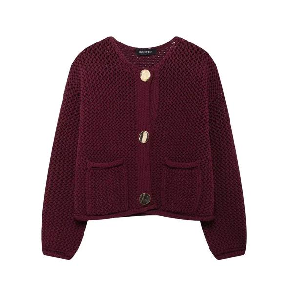 Traf-レディースカジュアルニットカーディガン、長袖、シングルブレスト、ルーズクロップセーター、y2kストリートウェア、秋、2024