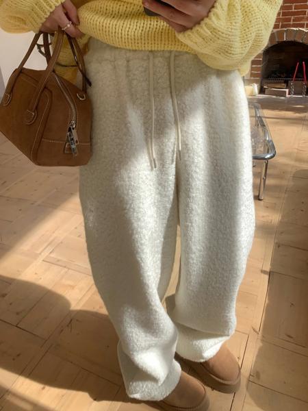 ロックモア-レディースラムウールウォームバギーパンツ、ハイウエストストレートパンツ、カジュアルソリッドスウェットパンツ、韓国、冬、2024