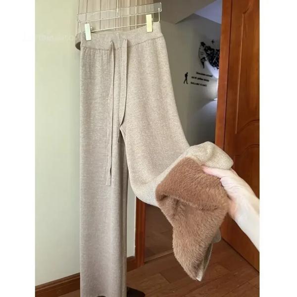 女性用ワイドレッグニットパンツ,ハイウエスト,厚手,カジュアル,ストレート,秋冬,2023