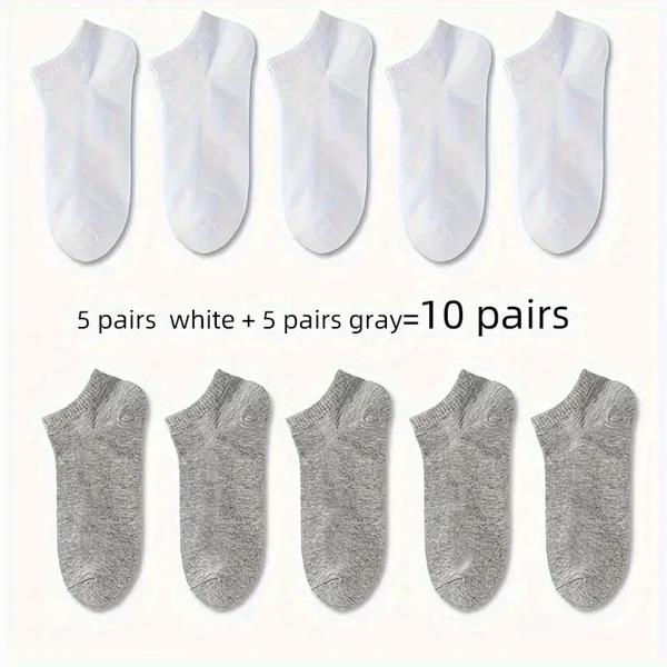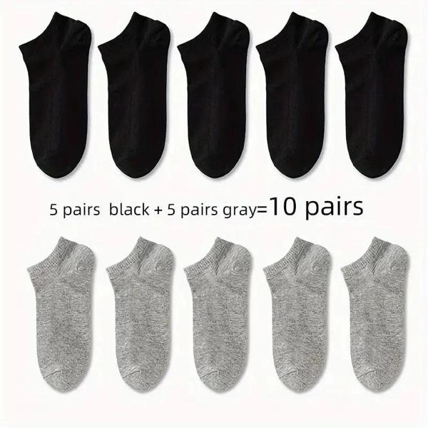 男性と女性のための通気性のある足首ソックス,ショートソックス,ローカット,上質,黒,白,グレー,快適,春,夏,5ペア,10ペア,2024