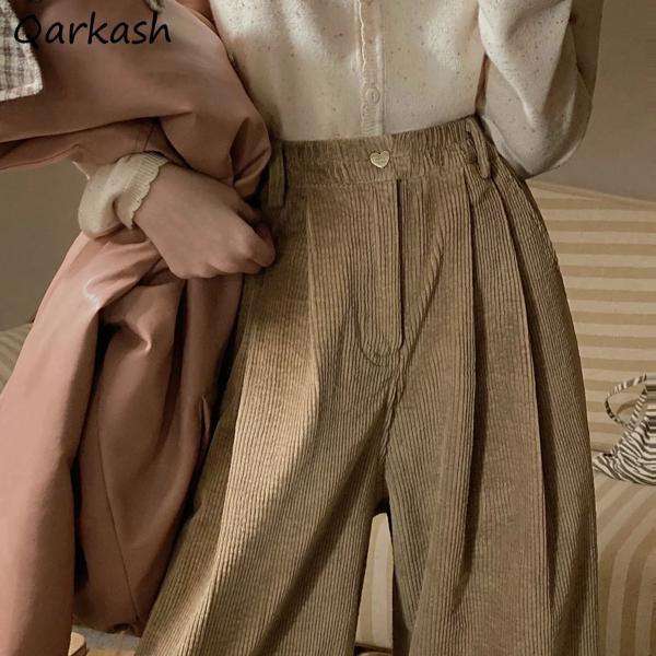 女性用ワイドレッグパンツ,カジュアル,美的,秋冬,ベルベット,日本スタイル