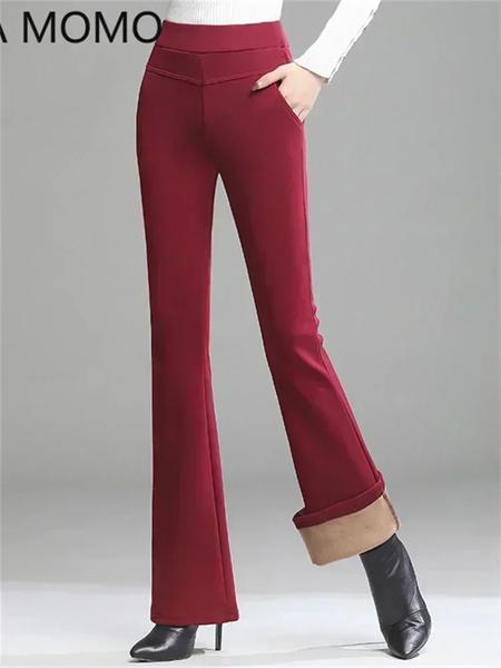 女性用厚手のフリースパンツ,タイトパンツ,ハイウエスト,ワイドフレアレッグ,女性用パンツ,冬コレクション