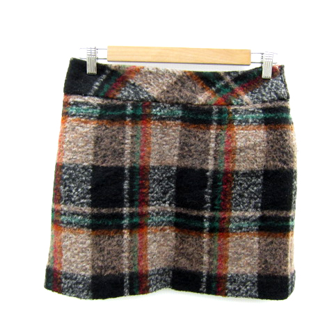 【中古】ビームスライツ 台形スカート ミニ丈 チェック柄 マルチカラー 36 S ベージュ 黒 ブラック レディース