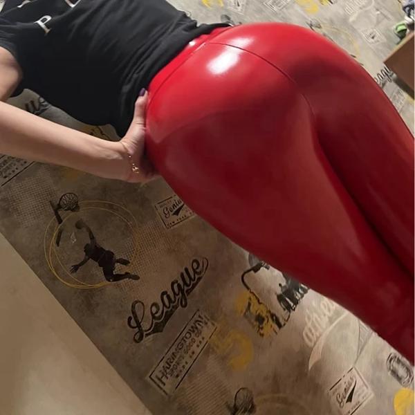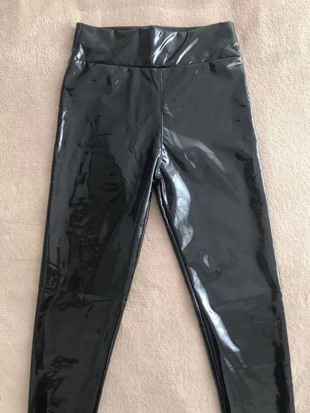 女性のための光沢のある黒の合成皮革レギンス,光沢のある伸縮性のあるミラー効果のあるハイウエスト腕立て伏せ光沢のあるファッション