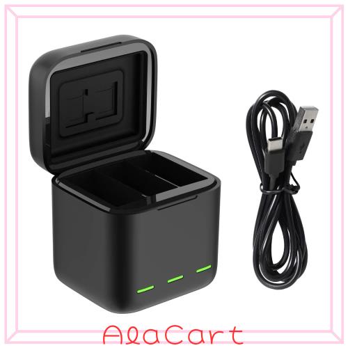 【3チャンネル充電器】gopro Hero 12 Hero 11 Hero 10 Hero 9 Black用の3チャンネルミニUSBバッテリー充電器は、最大3つのバッテリーを同時に充電でき、バッテリーを保管するための収納ボックスとしても設計されています。