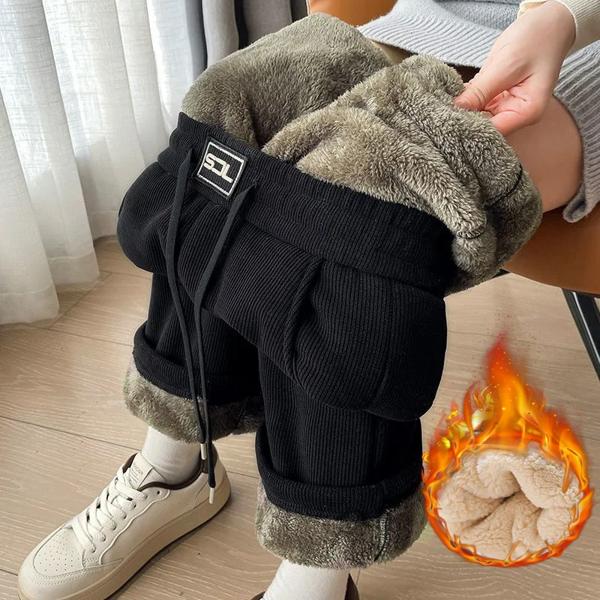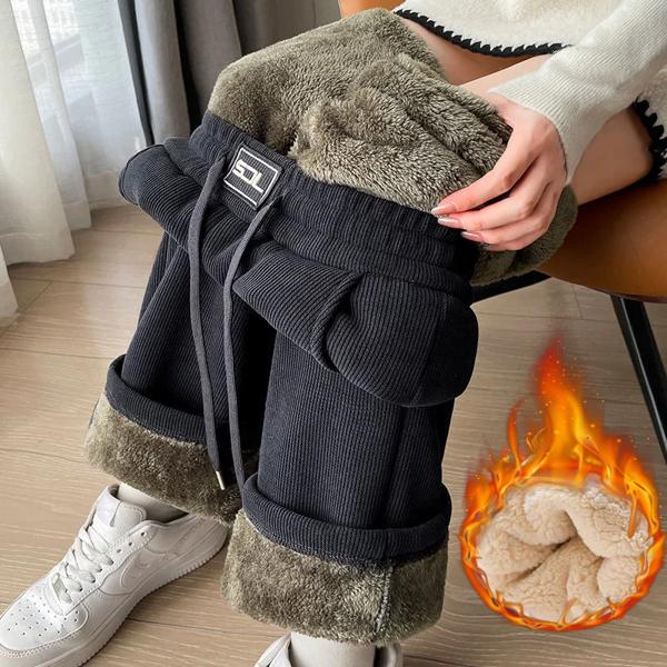 女性用伸縮性ウエストコーデュロイパンツ,ベルバーフリースパンツ,ストレート,カジュアル,厚手,韓国ファッション,秋冬