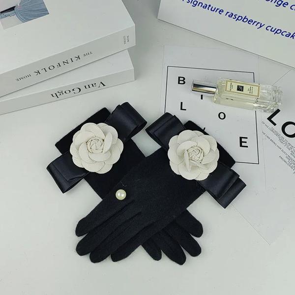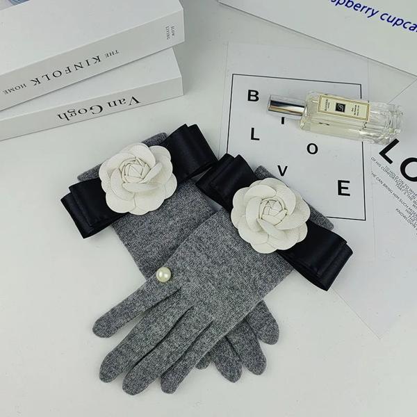 女性の韓国のカシミヤグローブ ウール パール フラワー フルフィンガー ベルベット 厚手 タッチスクリーン 暖かい 運転 屋外 冬