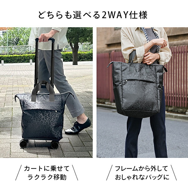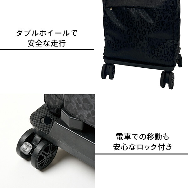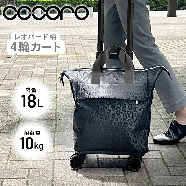 4輪カート カートバッグ 18L 2WAY レオパード ブラック キャリーカート カート ショッピングバッグ ショッピングカート 旅行 トラベル おしゃれ ヒョウ柄 ココロ COCORO 【送料無料】