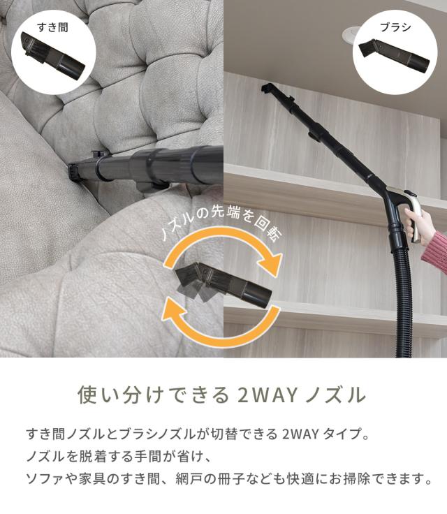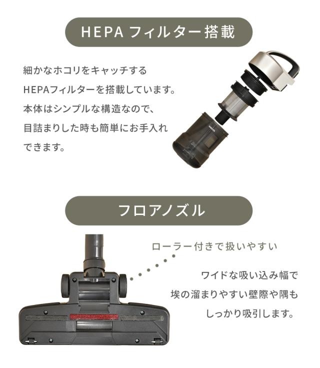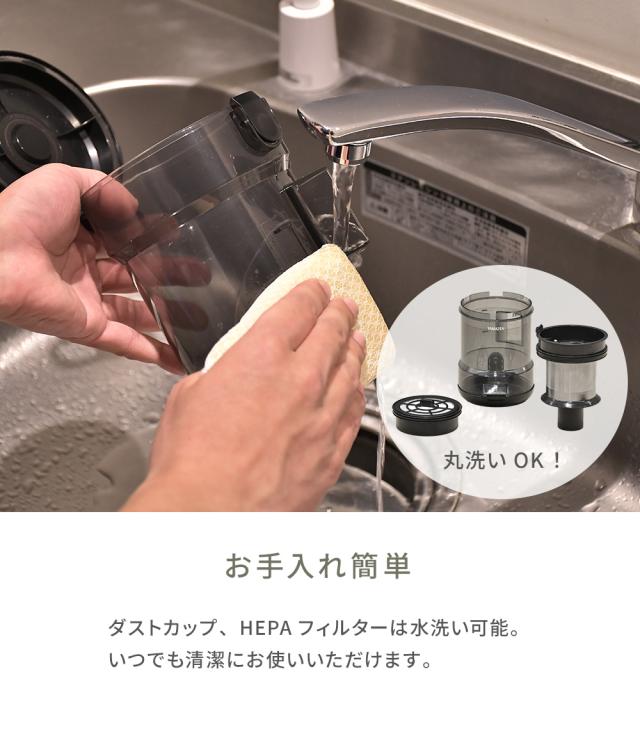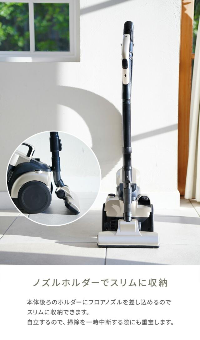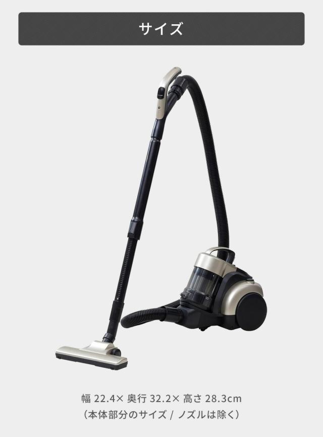 | 本体サイズ | 幅22.4×奥行32.2×高さ30.0cm 重量約3.0kg(本体のみ)/約4.3kg(フロアノズル、伸縮延長パイプ、ホース含む) |