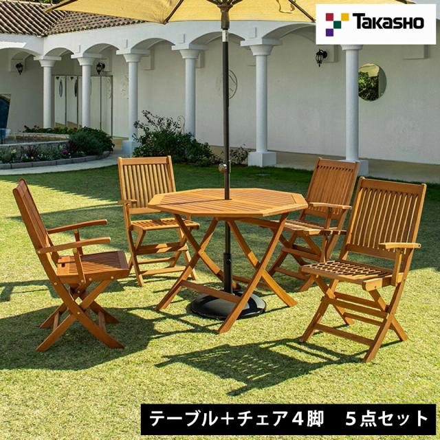タカショー マリーウッド オクタゴナルテーブル&フォールディングチェアー 5点セット