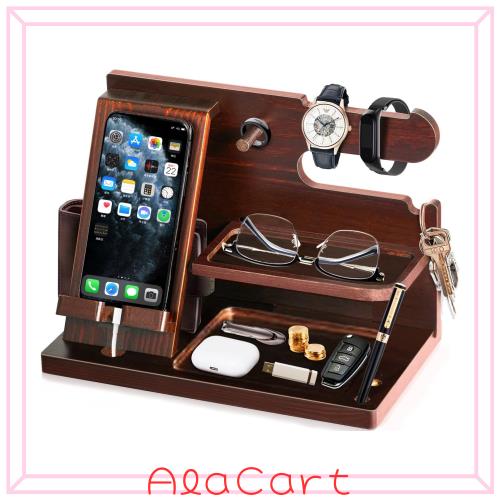 【もう散らからない】スタイリッシュな木製スタンドはガジェットにぴったりです。 財布、鍵、スマホ、時計、メガネなど、日常のすべてのアイテムを1つの場所に保管できる十分なスペースがあります。すべてが整っており、足りないものは何もない。