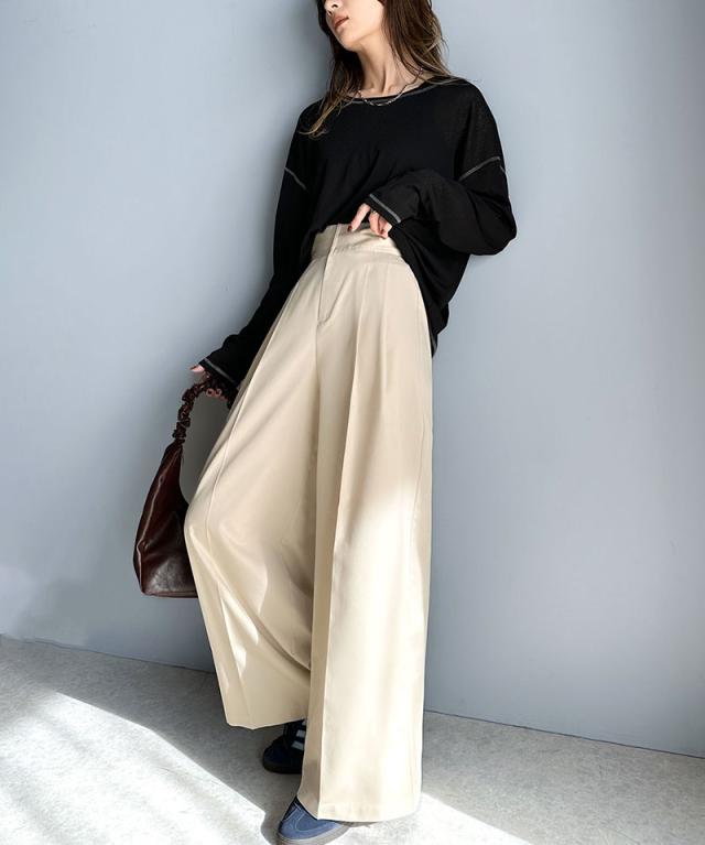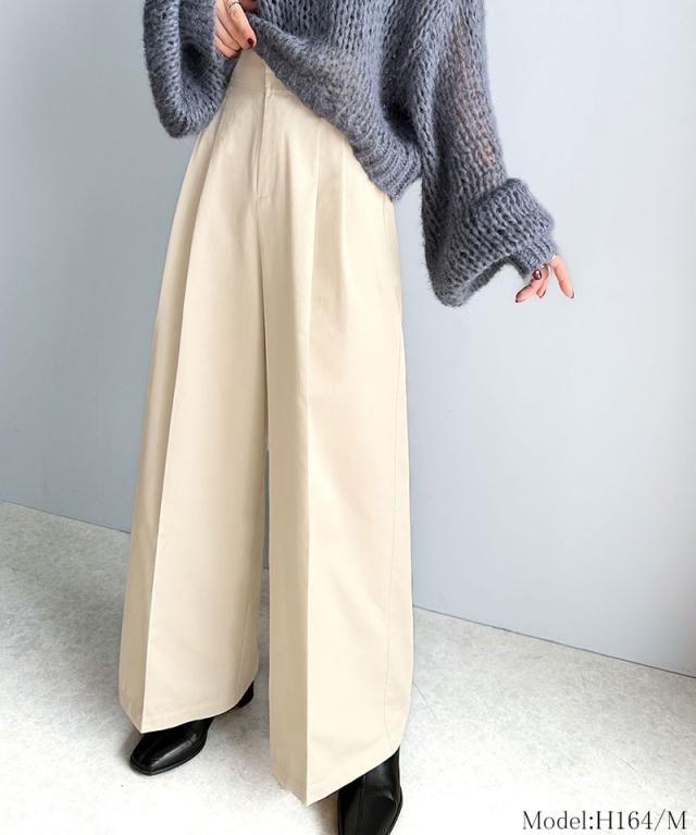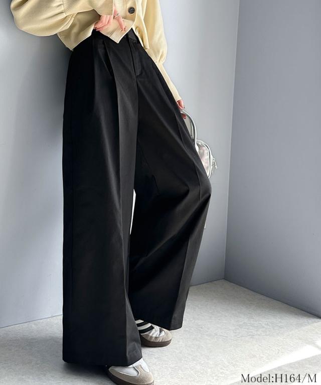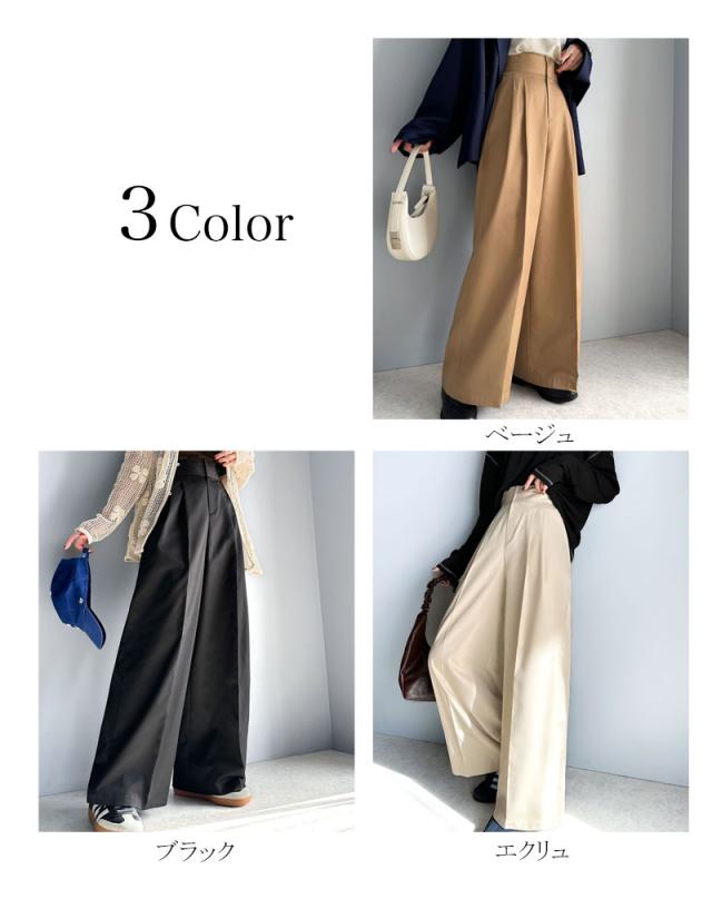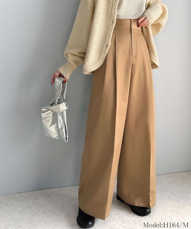クラシカルエルフ冬新作 ボトムス パンツ レディース ツータック ワイド シルエット ハイウエスト ツイル 素材 スラックス 高見え ウエスト 後ろ ゴム センタープレス 幅広 ベルト 大きいサイズ 2025ss ce0940224