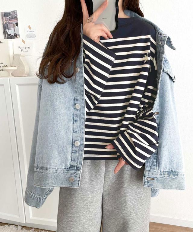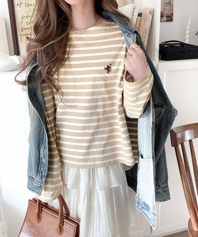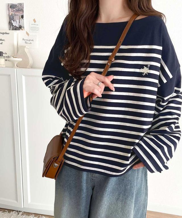 シンプルなボーダーパターンが、カジュアルでありながらも品のある印象を与えます。