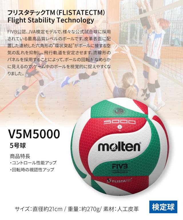 モルテン molten バレーボール 5号球 検定球 V5M5000 フリスタテック バレーボール5000 レディース メンズ 高校生 部活 クラブ チーム 一般用 ボール 球 ソフト構造 カラー 白赤緑 公式試合球 5000