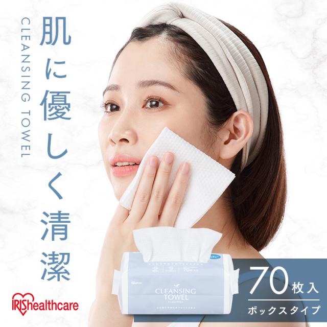 ★レビュー投稿でポイント還元★ 【2個セット】クレンジングタオル BOXタイプ アイリスオーヤマ TSC-70B 使い捨て クレンジング タオル フェイスタオル シート BOX ボックスタイプ やわらか 顔 手 拭き取り 厚手