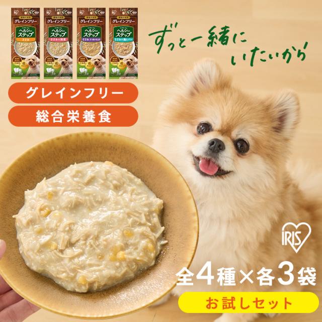 ドッグフード 犬 全種お試しセット ウェットフード パウチ 総合栄養食 グレインフリー ささみ さつまいも 野菜 低カロリー アイリスオーヤマ ヘルシーステップ *