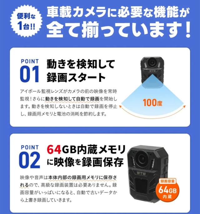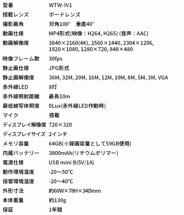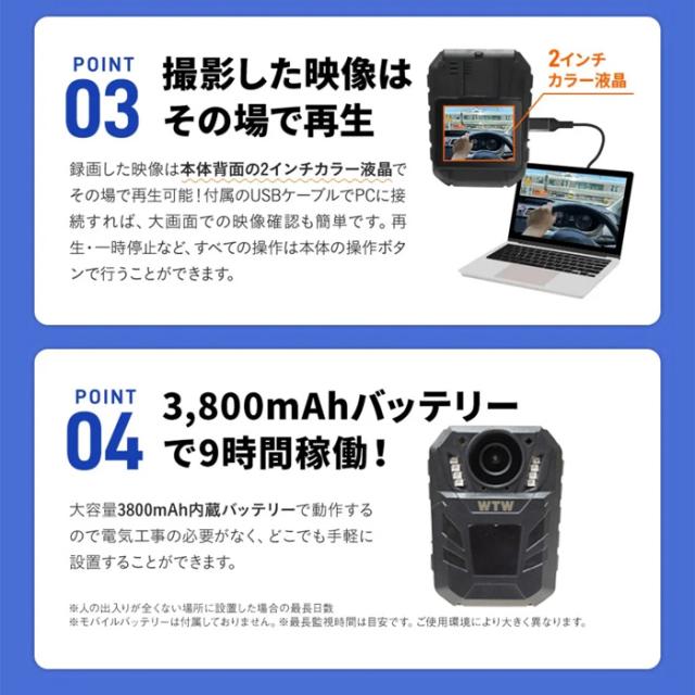 ■ WTW-IV1 | 4K800万画素赤外線搭載車載用小型トレイルカメラ【監視カメラ】【防犯カメラ】