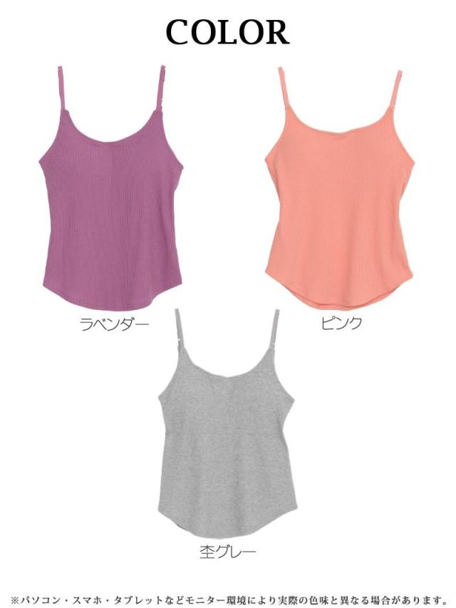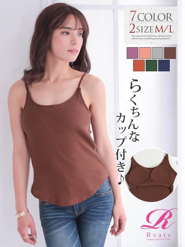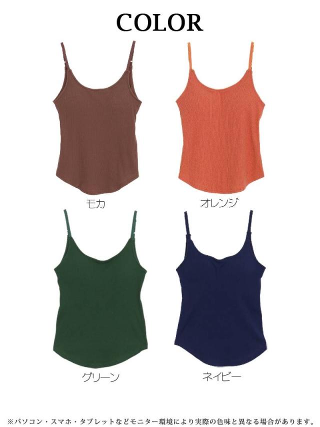 ☆カップ付きで伸縮性があって着心地が楽ちんな無地キャミソールは10色とカラーバリエーション豊富で幅広く選べるワンカラートップス♪
