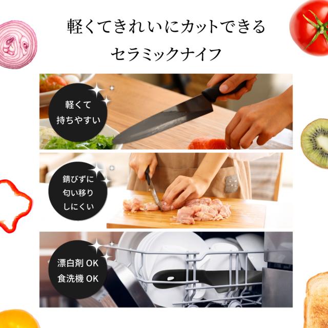 セラミック製黒刃包丁 セラミックナイフセット メンテナンスフリー さびない 菜切り包丁 シェフナイフ フルーツナイフ 柳刃包丁 パン切り包丁 オシャレ ブラック 黒 owltech オウルテック おうるてっく