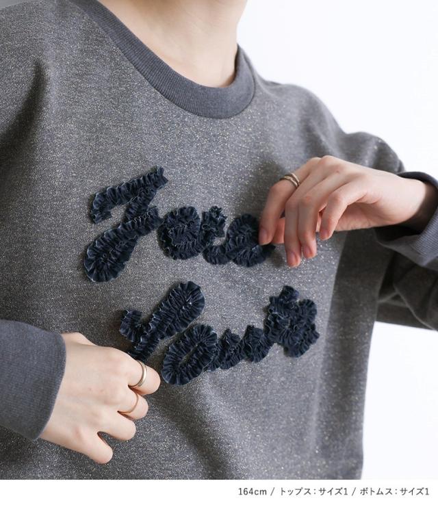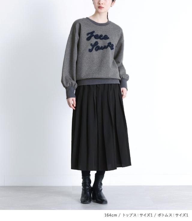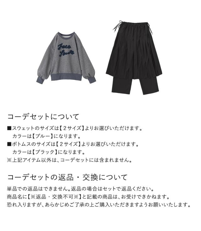 【送料無料】『チュールロゴラメスウェット×プリーツスカート×ストレートパンツセットコーデ2点SET』【メール便不可】【50】[2点コーデセット 2025 レディース スウェット トップス パンツ スカート レイヤード]