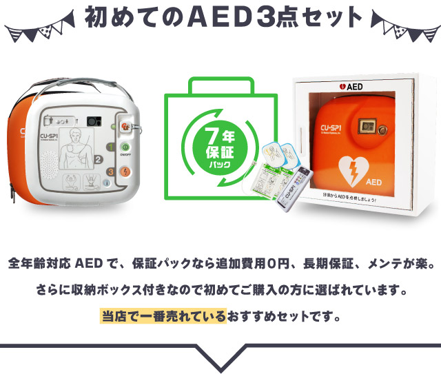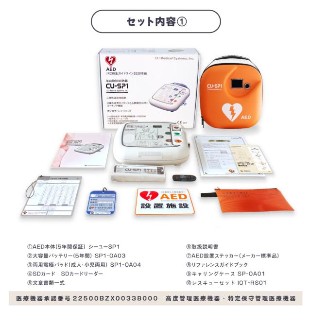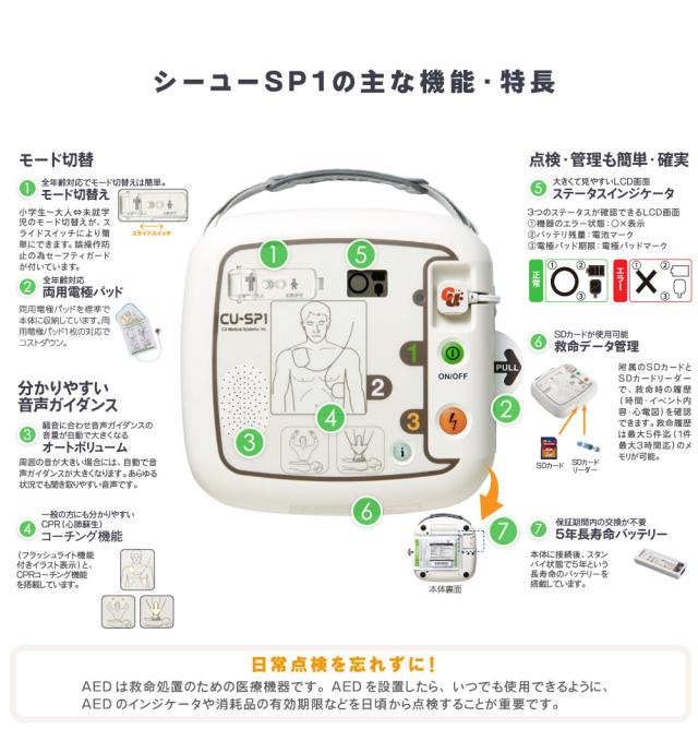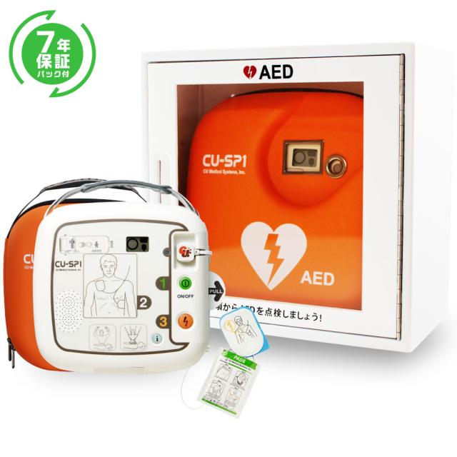AED 自動体外式除細動器【初めてのAED3点セット】シーユーSP1 (CU-SP1)+収納ボックス+7年保証【お見積もり無料】【領収証発行可】